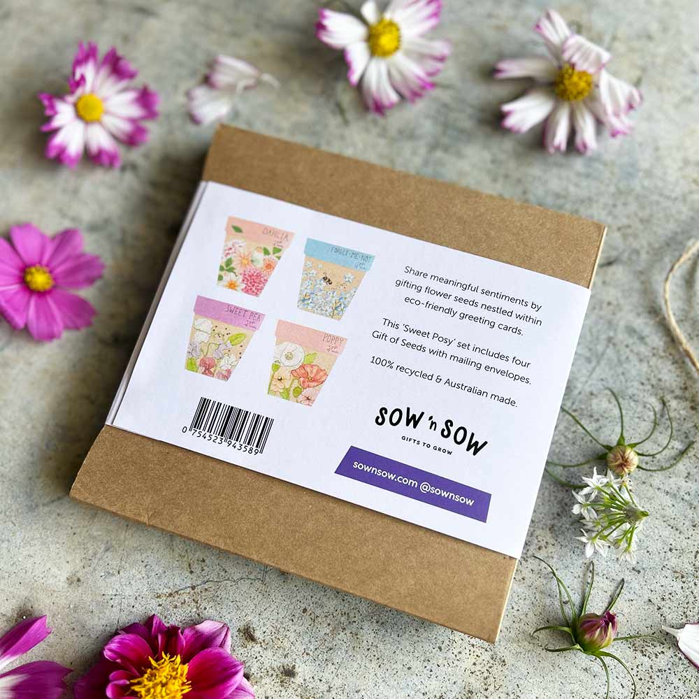 Sow'n'SowDesigned to bring joy on any occasion, the Sweet Posy set includes four Gift of Seeds with mailing envelopes, ensuring that sending a touch of nature and beauty to someone special is effortless and eco-friendly.