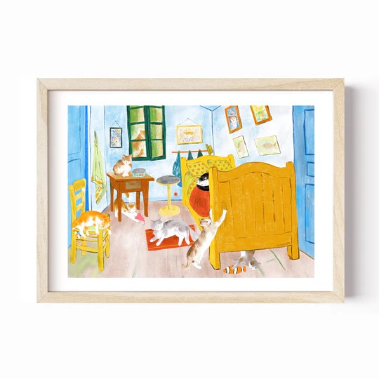This is her collection of A5 Cat prints, from 'Cat's in famous paintings', to foodie cats.