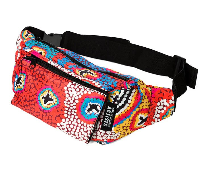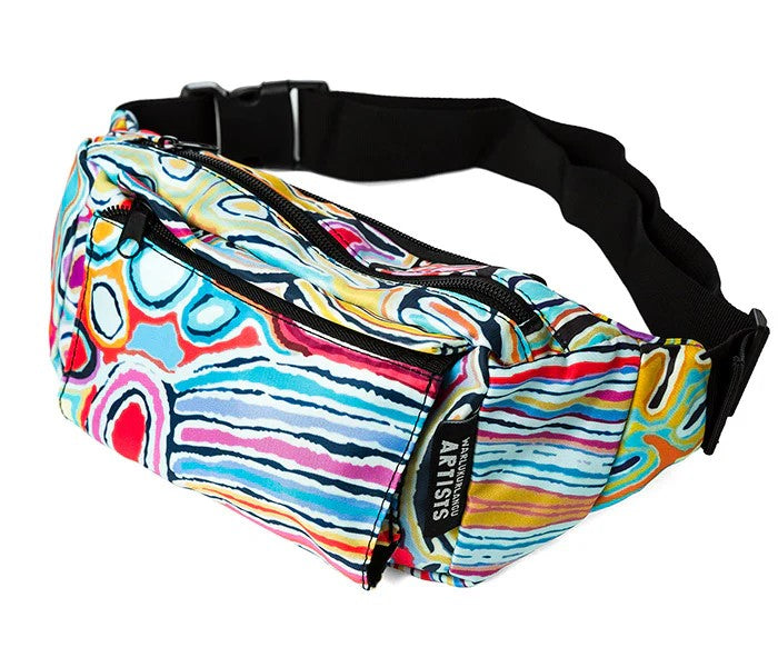 PookipoigaFor when you're on the move and don't want to overload your pockets. Don't leave those essentials behind! Grab your bum bag, or hip pack and head out in style! Featuring artwork, reproduced under license from Warlukurlangu Artists from the remote desert communities of Yuendumu and Nyirripi in Central Australia.