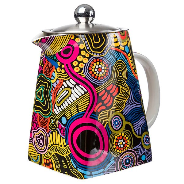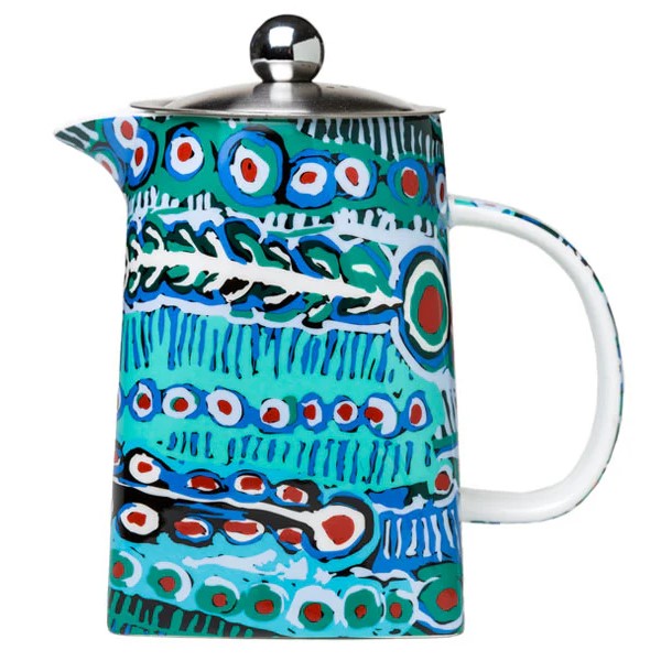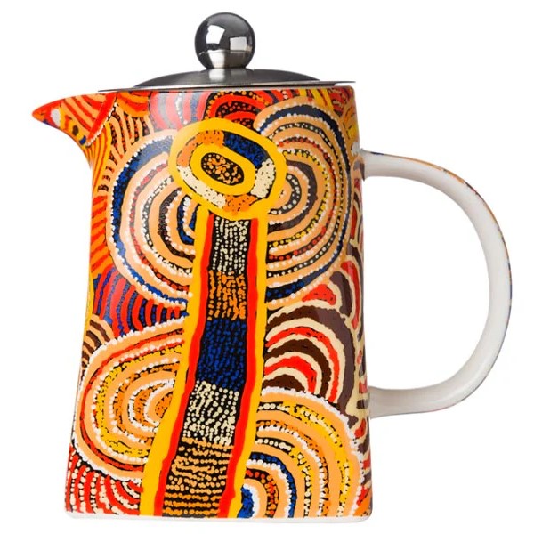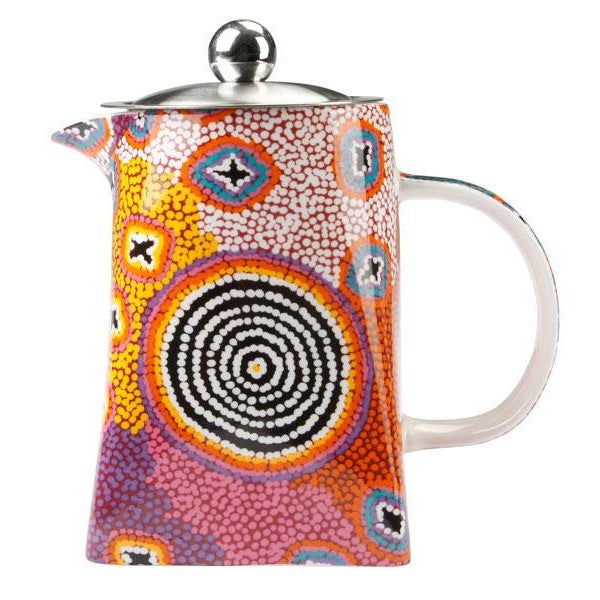 PookipoigaFine Bone China Teapot, featuring artwork by Aboriginal artists, with Stainless Steel Strainer.