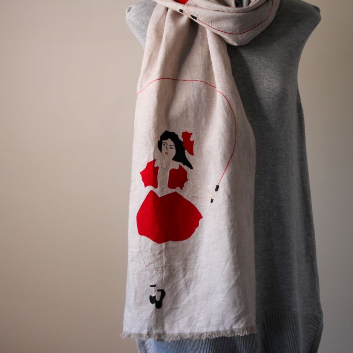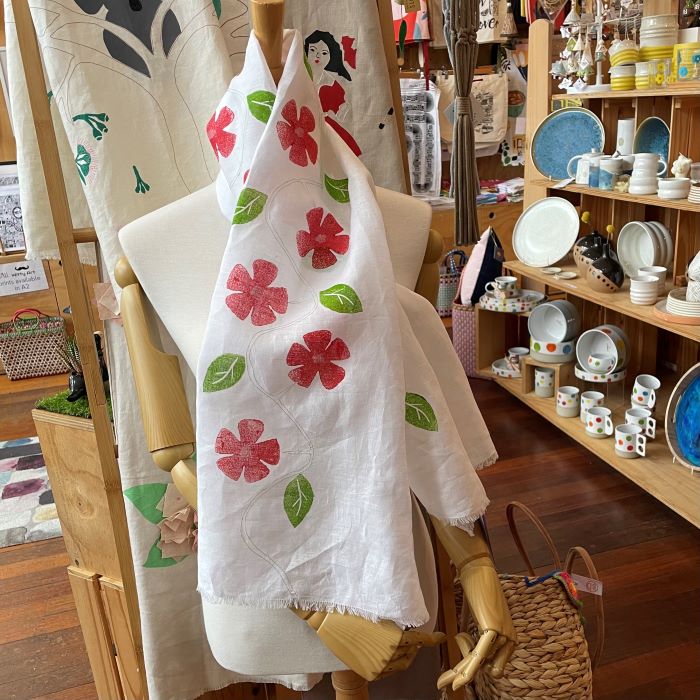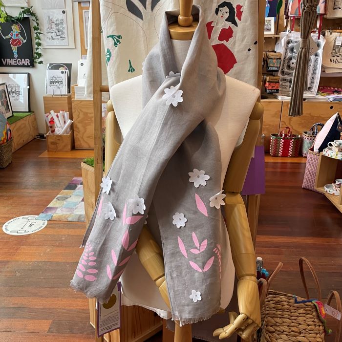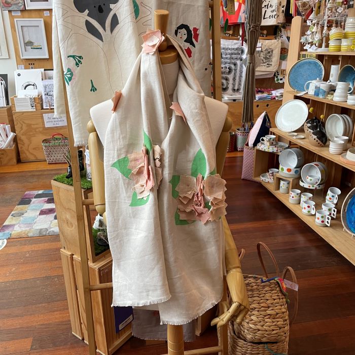 Discover beautifully made 100% linen scarves, embroidered and screen printed by Julie at Julevidge in Melbourne. Each scarf is uniquely handmade, ensuring you have a one-of-a-kind accessory.