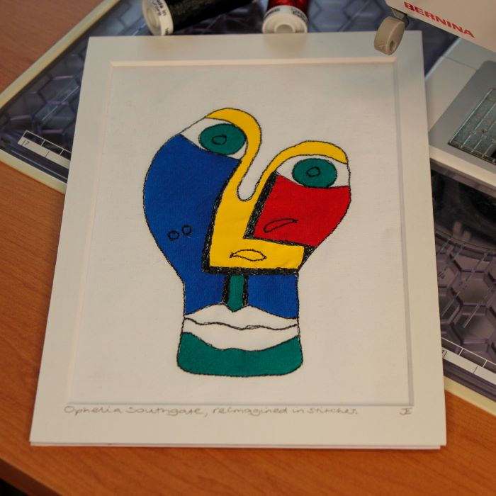 The artwork is on cotton fabric and mounted on an A5 board ready for framing