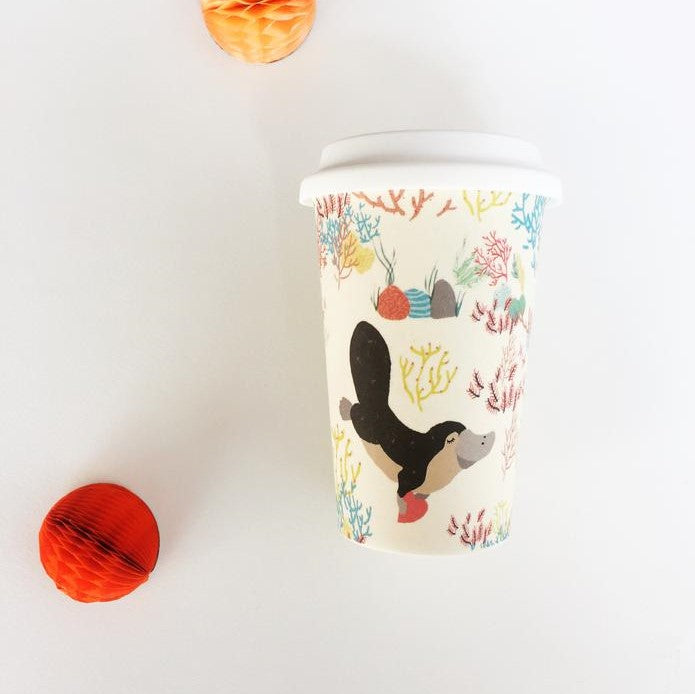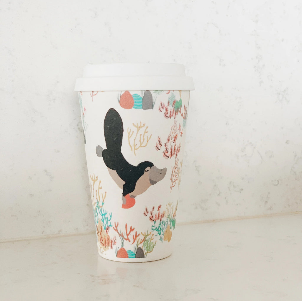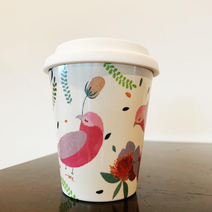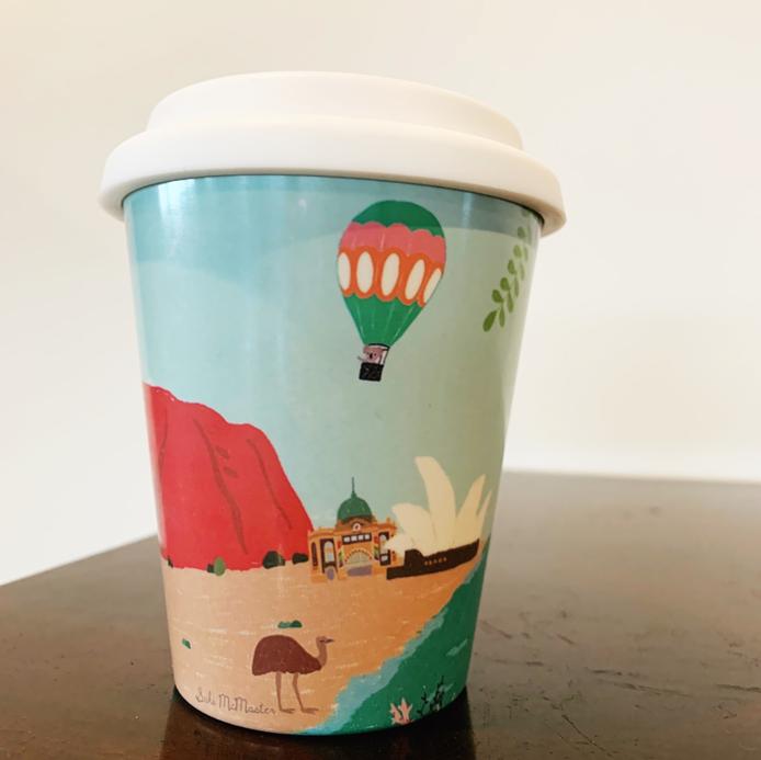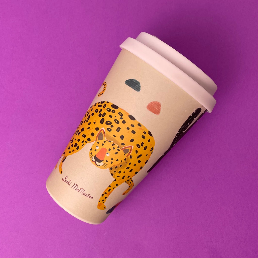 Suki McMasterSustainable bamboo, reusable takeaway coffee cups / keep cups, featuring Suki McMaster's iconic illistrations.
