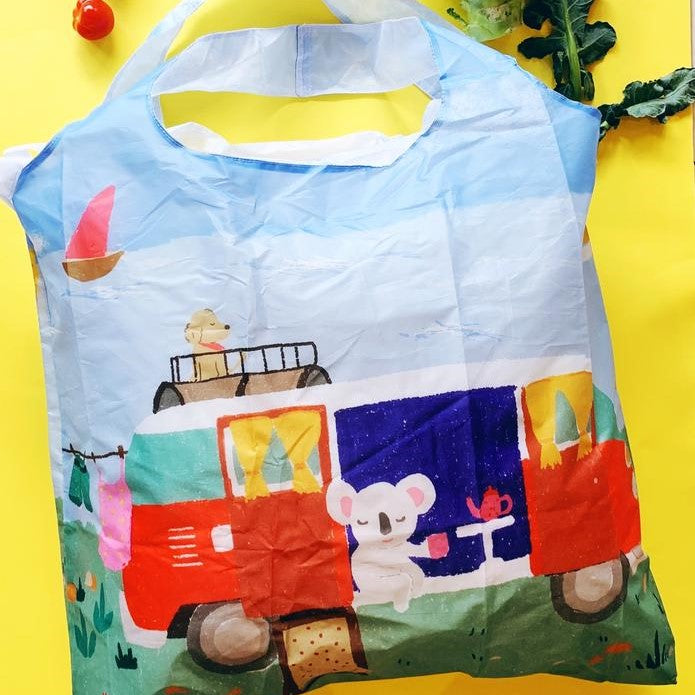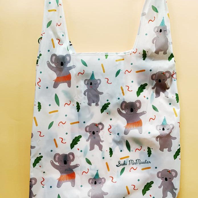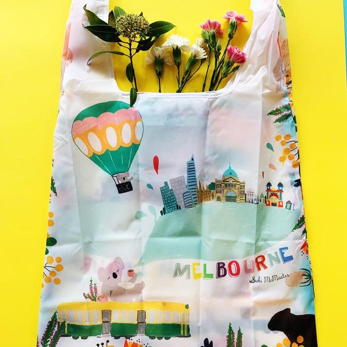Suki McMasterLarge reusable shopping bags, featuring Suki McMaster's iconic Australiana illustrations.