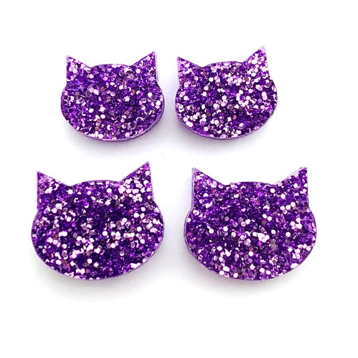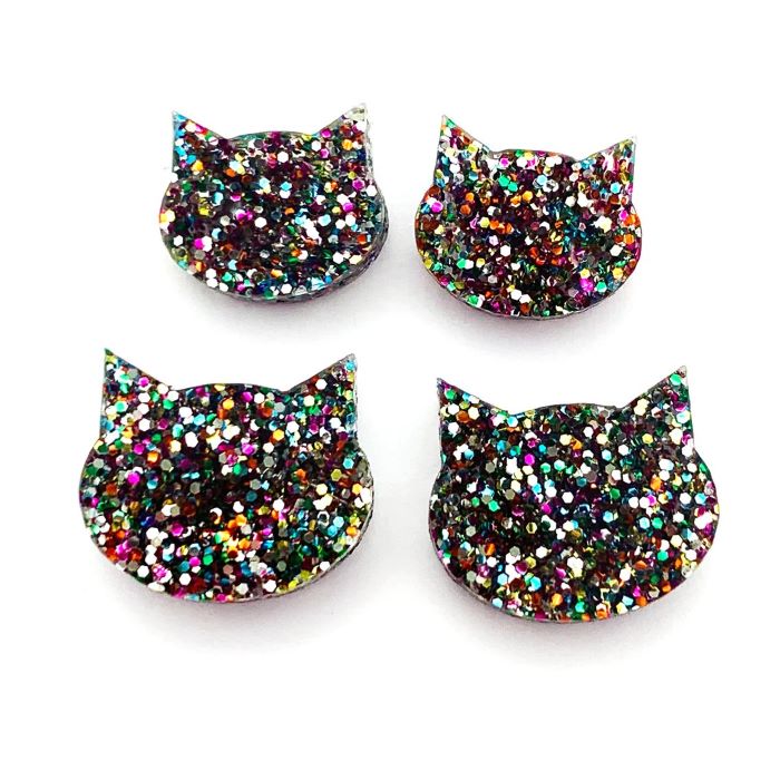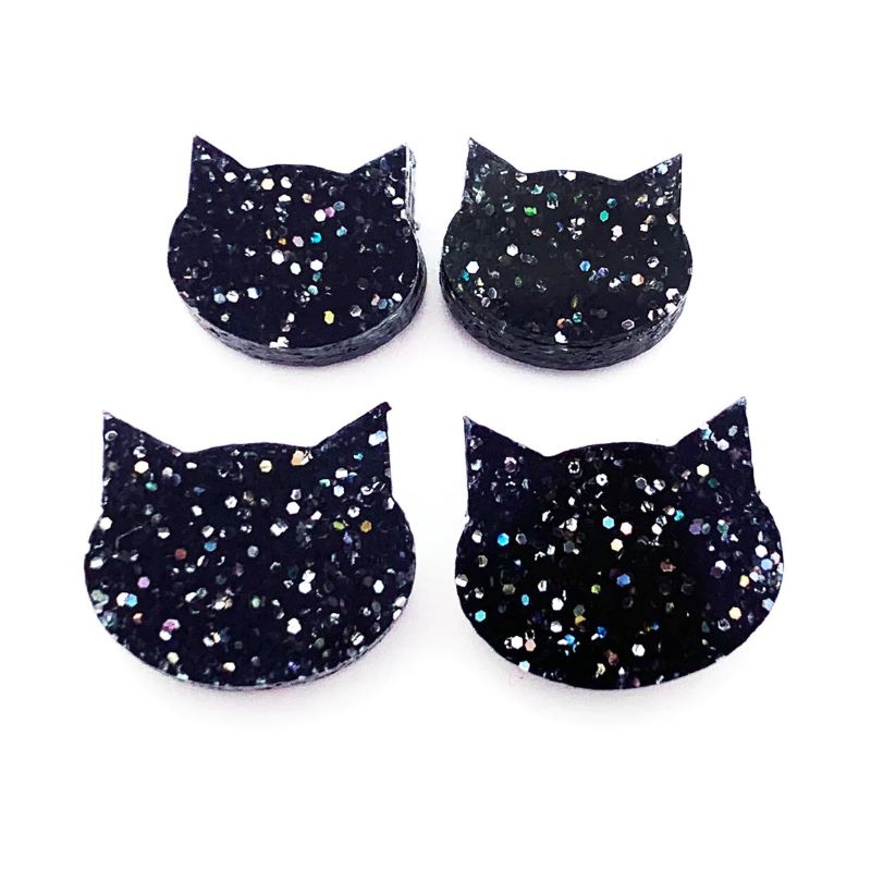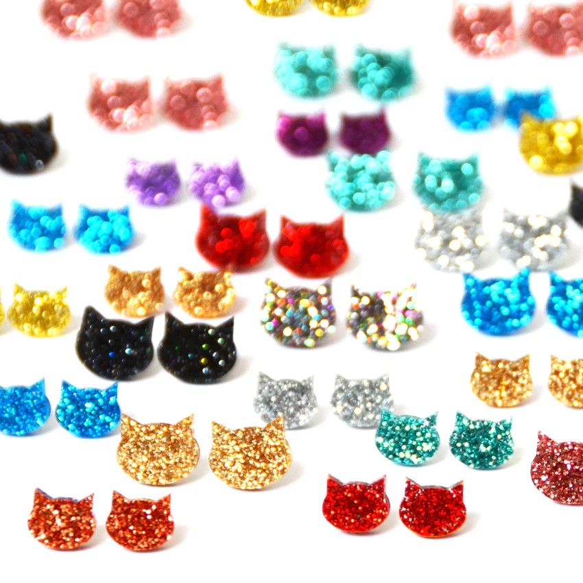 Super cute glitter cat studs, Handmade in Melbourne by Helen at Blossom & Cat.