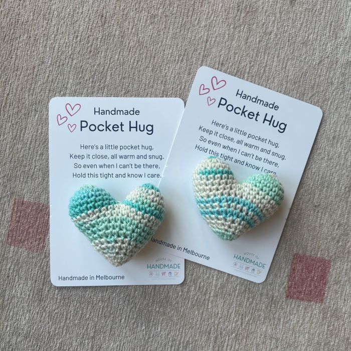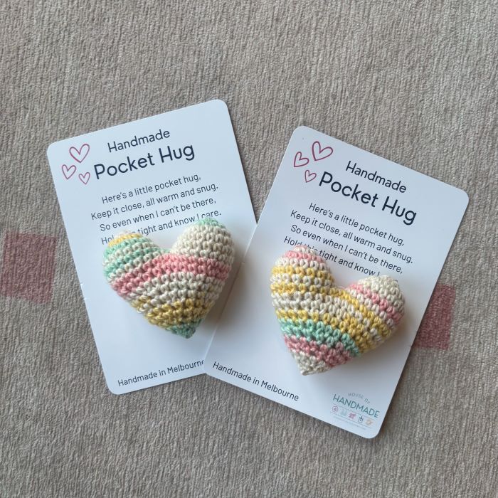 Archer & MeCute little crochet pocket hugs! Handmade crochet hearts to gift to those just needed a hug!