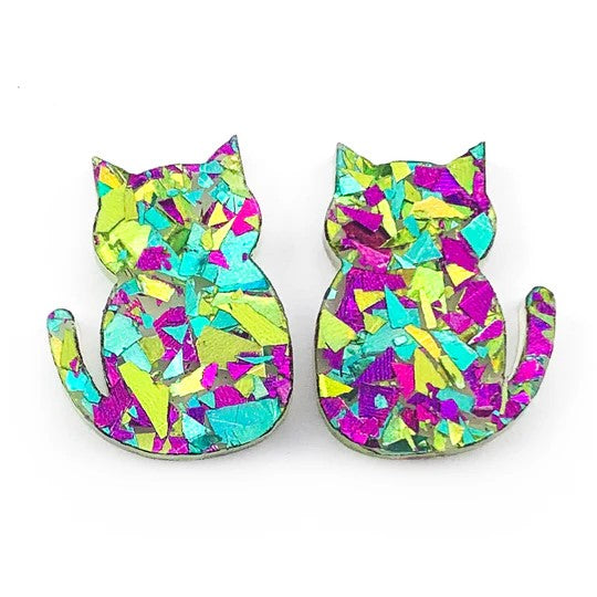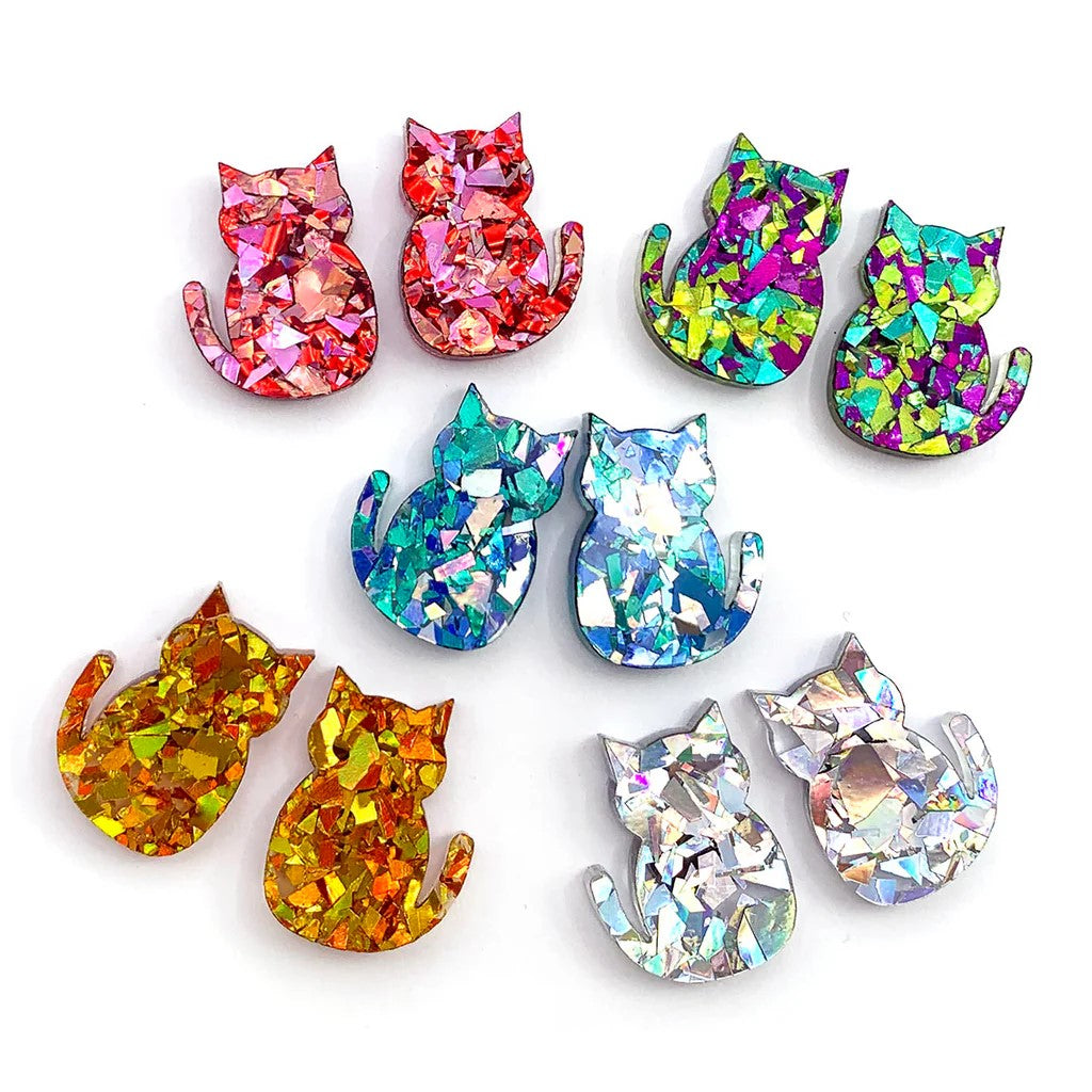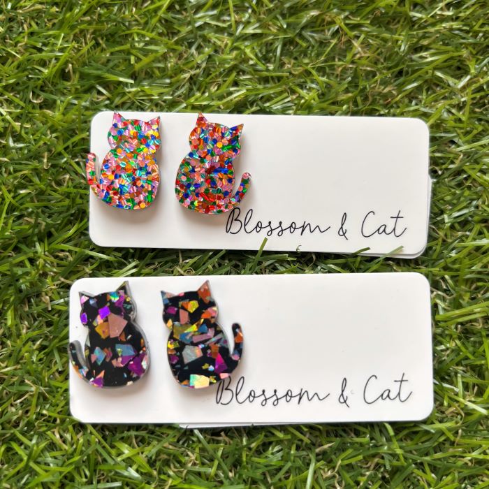 Blossom & CatThese 'must have' Cat Earrings have been laser cut from premium glitter acrylic and assembled by hand. They have a lovely smooth finish and sparkle as they catch the light.