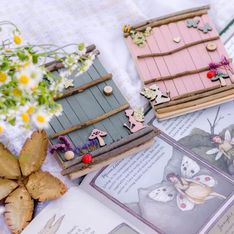 Fairy Door Kit : Design and make your own magical fairy door with a choice of pink or green paint, dried flowers and eco-glitter. Includs: