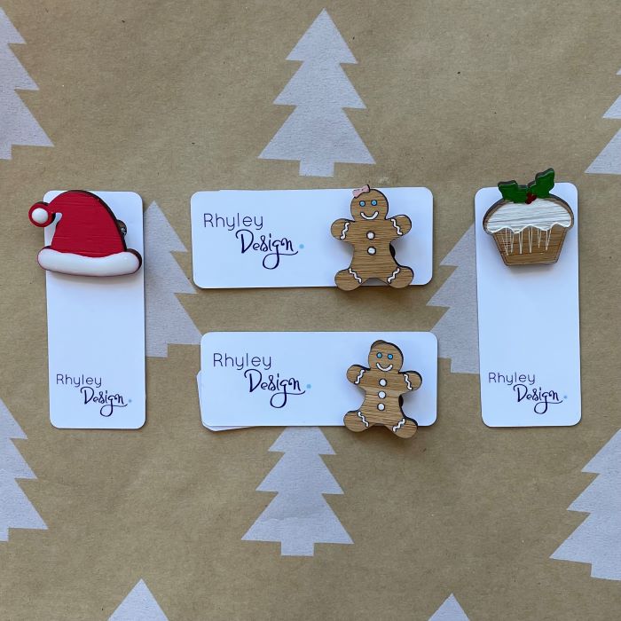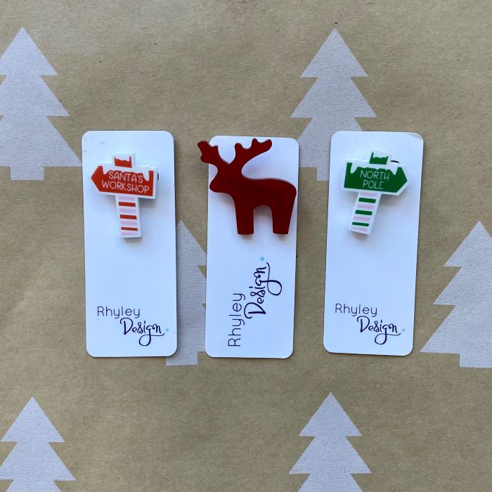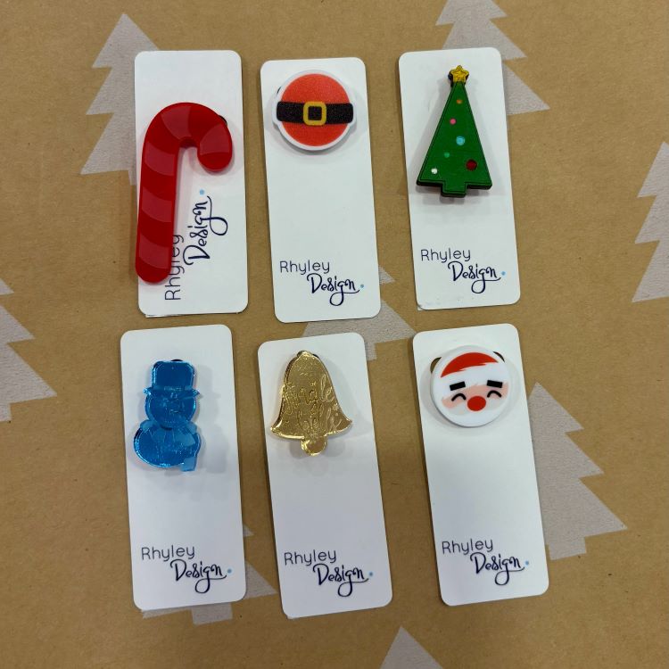 Pin on the cheer with Rhyley Designs’ handmade Christmas brooches—festive flair you can wear! Designed and crafted in Melbourne by Nat, these playful acrylic brooches feature everything from jolly Santas and sparkly trees to cheeky puddings and retro reindeer.
