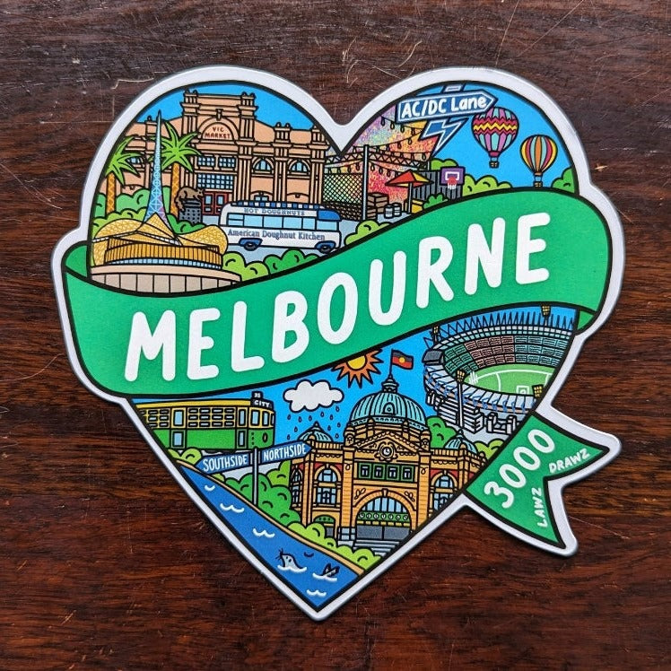 Lawz DrawzLaura Holley from Lawz Drawz is on a mission to capture the best bits of Melbourne! She has transformed her famous Melbourne suburb illustrations into delightful, high-quality magnets. Featuring vibrant, full-color artwork of the suburb heart, these magnets are the perfect addition to any fridge.